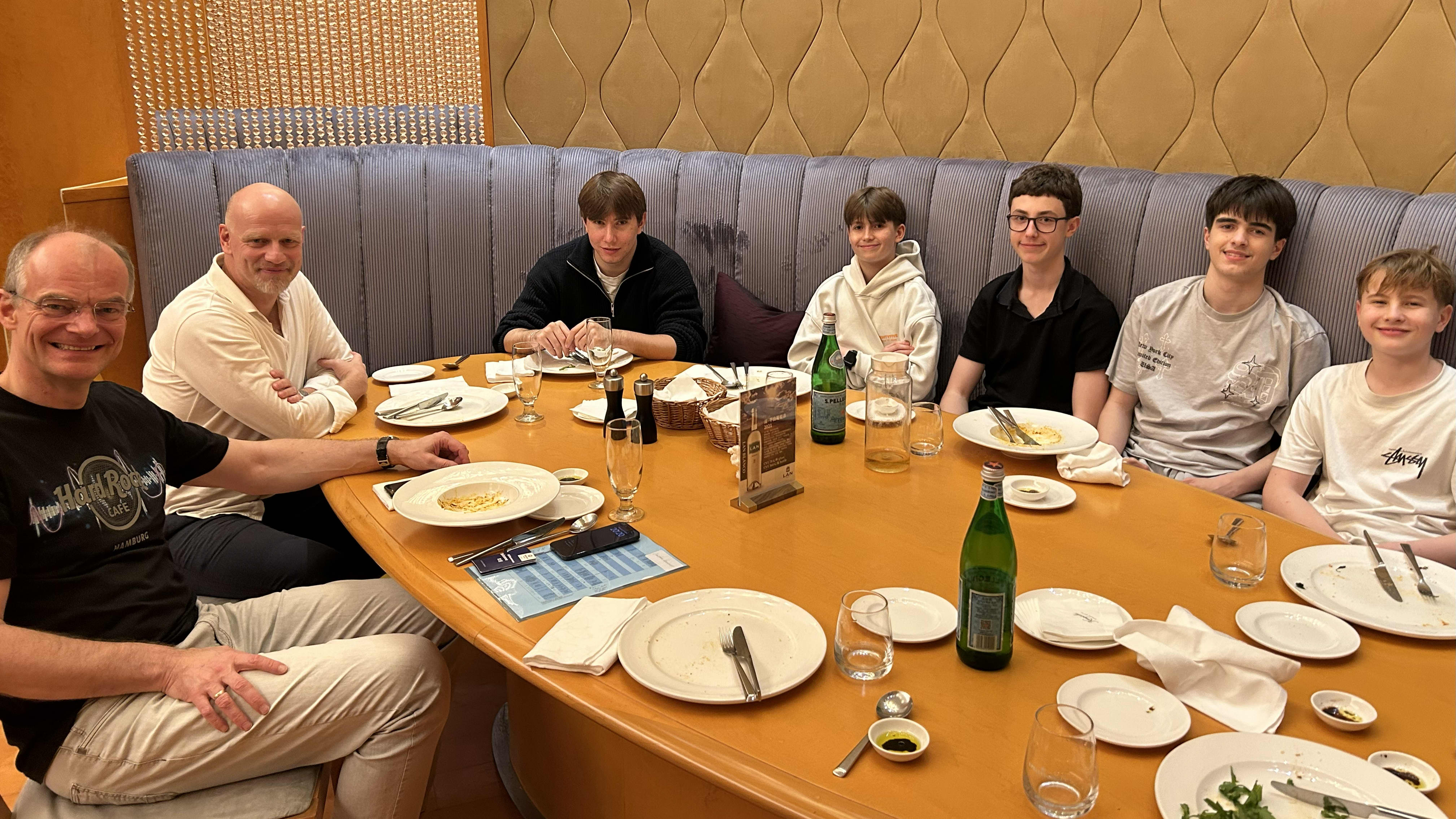 Nach dem Bestellen (Pizza und Nudeln, nicht gerade chinesisch) verraten mir die jungen Spieler, wie sie heißen und auch, wie alt sie sind. Bei zwei von ihnen hatte ich mich hoffnungslos vertan: Matthis Kassens und Maris Miethe schätzte ich auf 12 bis 13 Jahre, obwohl beide bereits 15 sind. Zumindest bei Daniel Nagy (15) und Alexander Uhing (16) lag ich beim Alter ungefähr richtig.