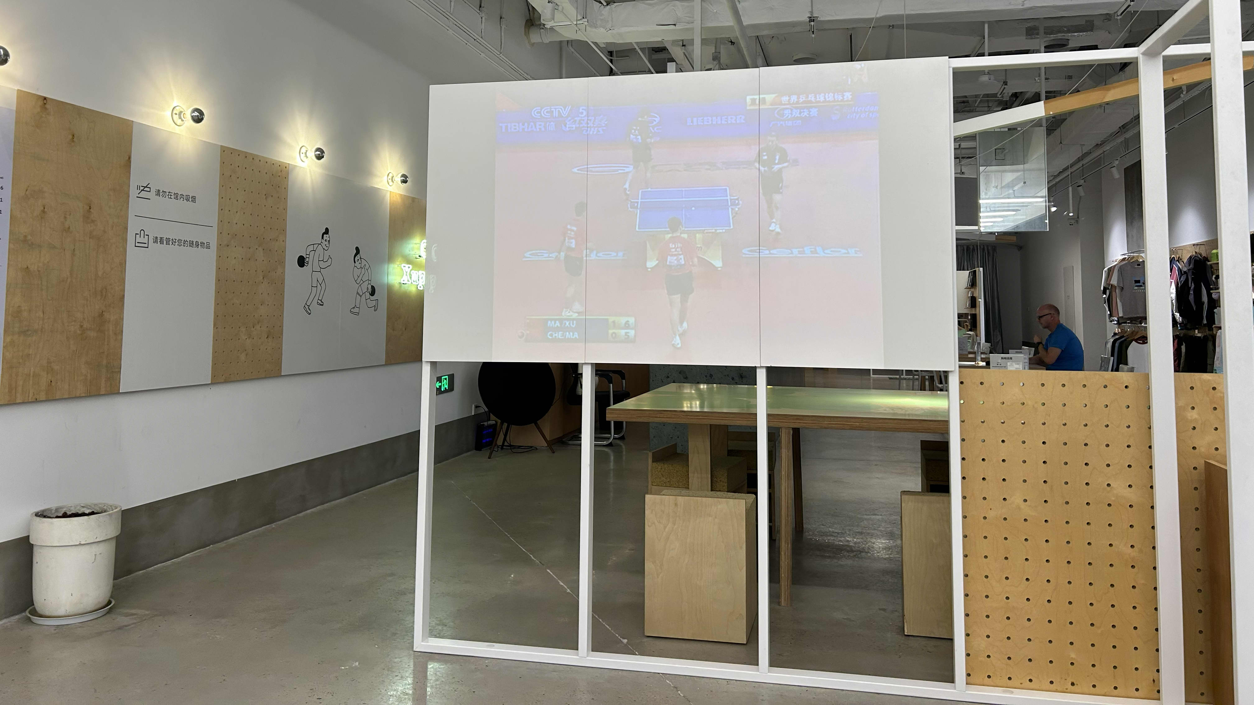 Das Café selbst ist geprägt von dem „Cloudwalker“ Xu Xin, oder eher: von seiner Cartoon-Figur. Es gibt einen Tresen und einige Tische, an denen man Kaffee und andere Getränke bestellen kann. Zunächst wirkt es wie eine Art Starbucks für Tischtennisspieler. Kaffee-Lifestyle und Tischtennis – eine Kombination, die auf den ersten Blick nicht wirklich zueinander passt. Dahinter steckt aber eine Geschäftsidee: Xu Xin, bekannt für seinen außergewöhnlichen und etwas exzentrischen Spielstil, will mit dieser Kombination eine neue, zu ihm passende Marke aufbauen. Und die Idee, nach einem Training gemütlich bei einem Getränk beisammenzusitzen, ist dann doch nicht so weit hergeholt.